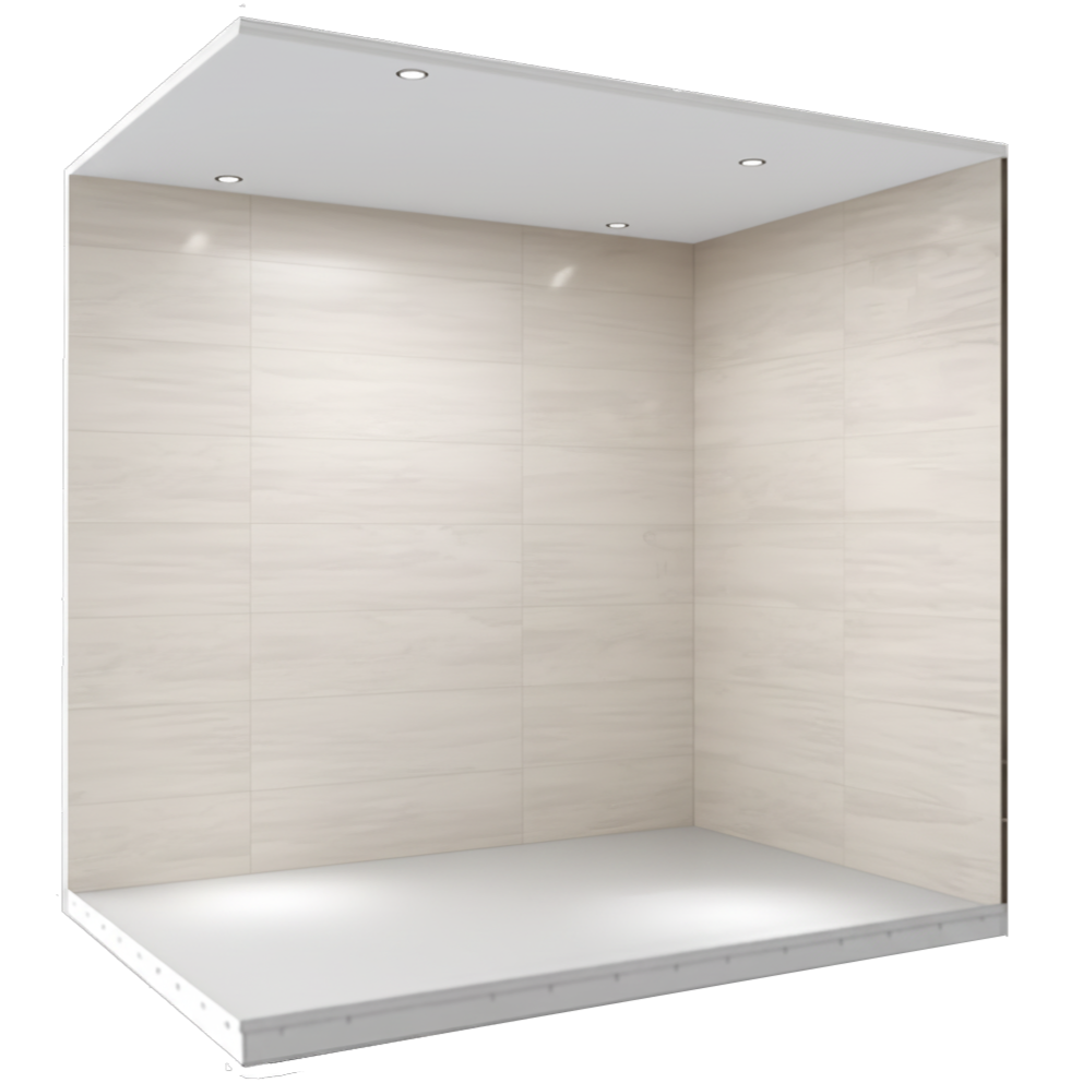 With our shell-only option, we supply just the bathroom enclosure (walls, floor, ceiling & shower doors) along with the inwall and underfloor plumbing.